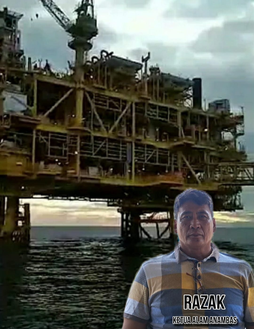 Perpaduan Gambar Antara Ketua ALAM, RAZAK Dengan Offshore Blok B Medco Energy Natuna, Sabtu(5/10).